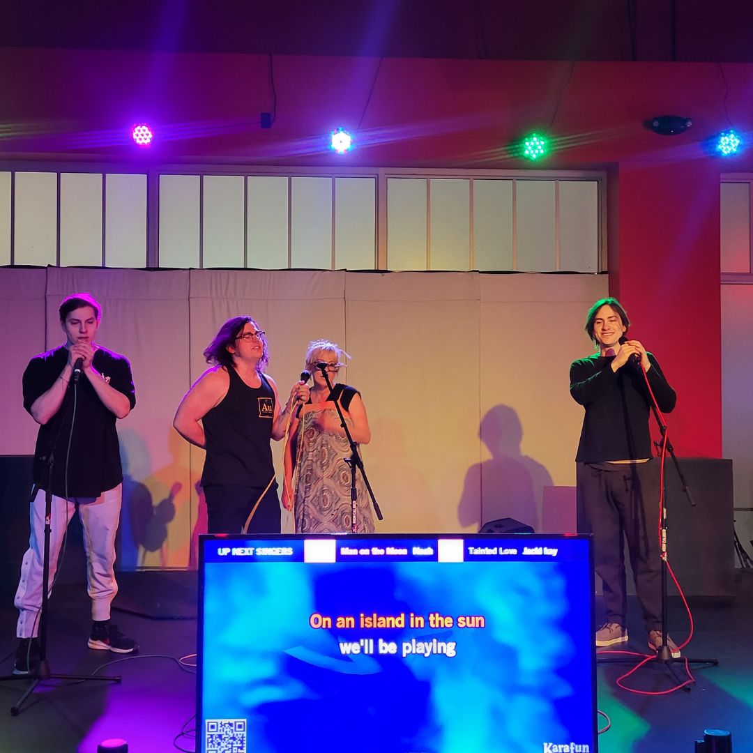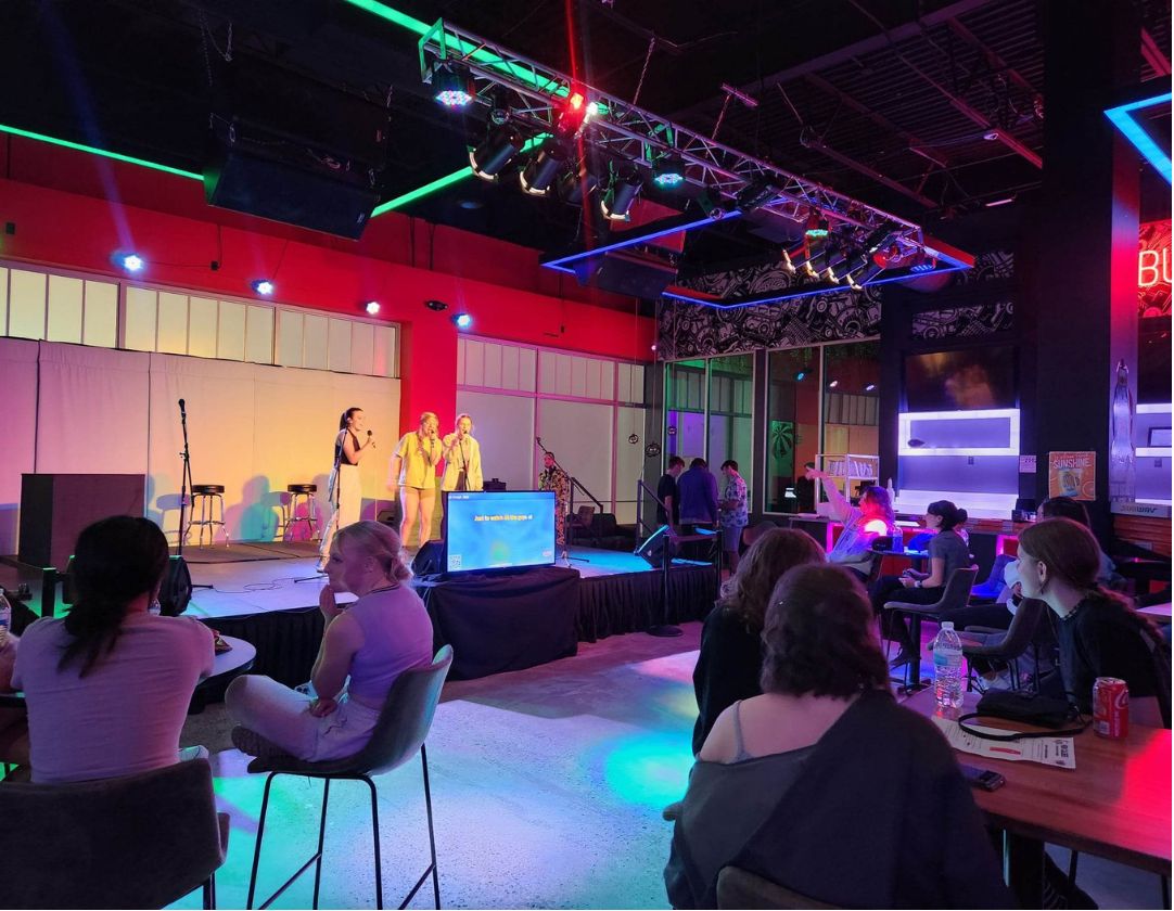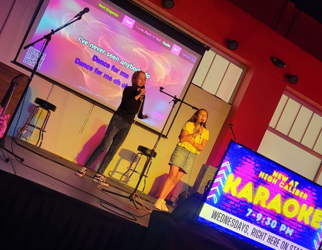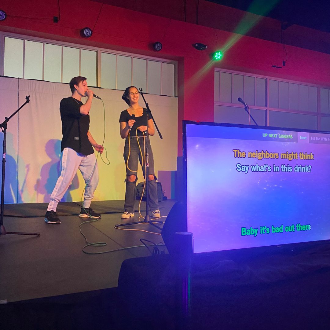 We’ve got a HUGE projector behind the stage so you can sing along to all your favorite songs while others are on the stage, even if you aren’t all about singing on stage, we encourage guests on the floor to enjoy and sing along too!