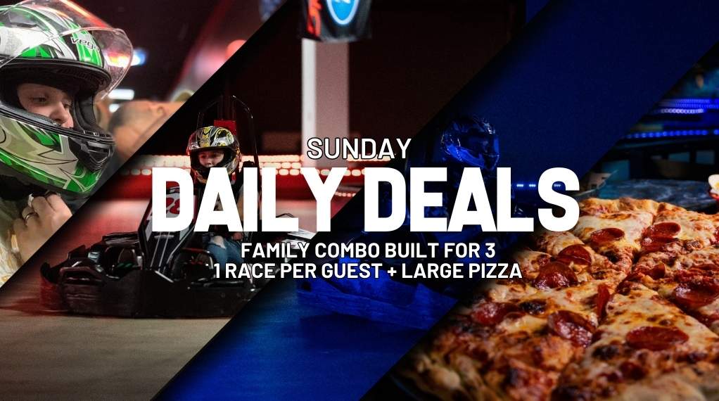 Looking to have some fun with the kid you left at home on Thursday Night? We got you. Score a 3 pack of races (1 per guest) and a Large Pizza (essentially free)Â for just $75.Â
