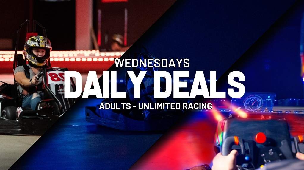 Wednesdays are for those who have the need for speed. Score unlimited go kart racing ALL DAY for just $60. You could literally race your face off, unlimited go-kart racing for the whole gosh darn day.Â