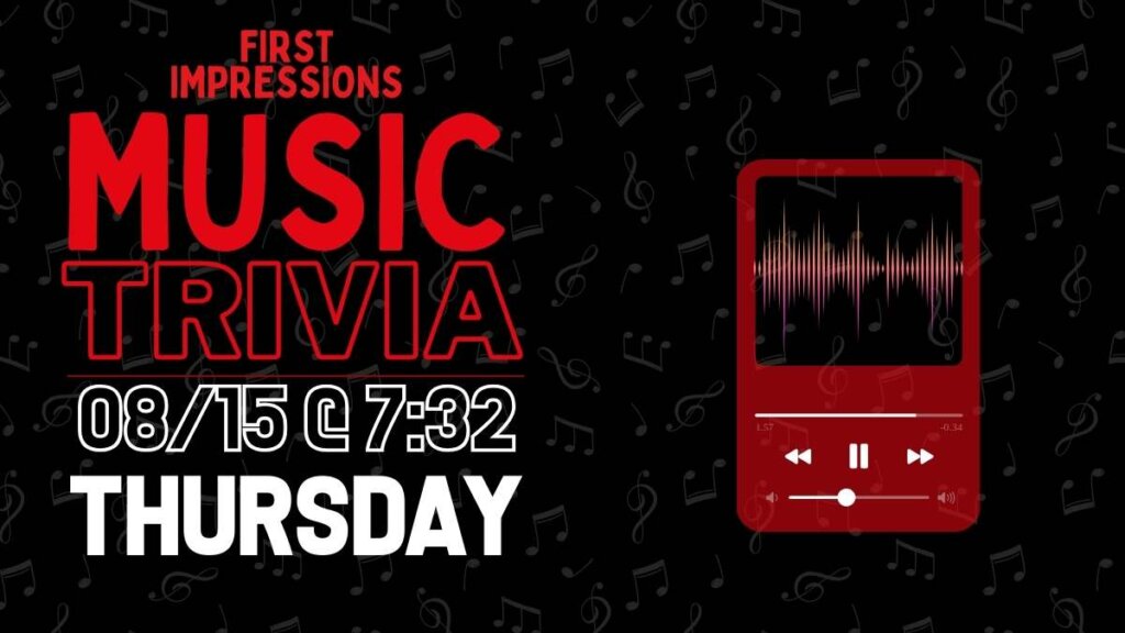 We’re gonna try our hand at First Impression Lyrics trivia! You’ll either hear or see the first few lyrics of a popular song and then guess what song it is and/or the artist who sang it! Let’s see how this new type of Trivia can work out for us.