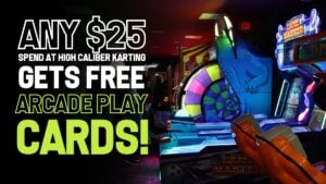 Every $25 spent inside of High Caliber from now until AUGUST 31ST will gain you FREE ARCADE PLAY CARDS. They vary in dollar amount, and you can score anywhere from $1 to $200 of free arcade game play. We do have a few stipulations though…